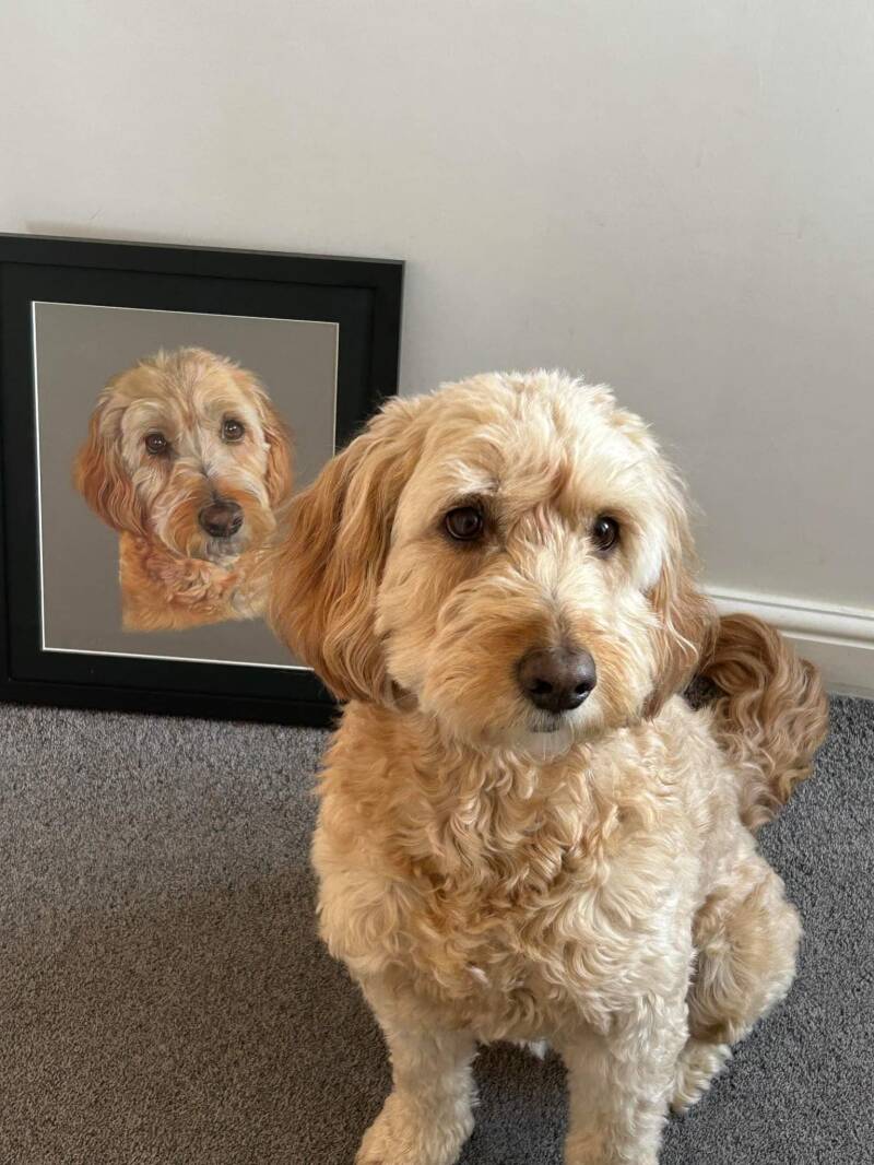 Perhaps your pet could even pose next to it for a photo and join the below gallery of pooches with their portraits!!
